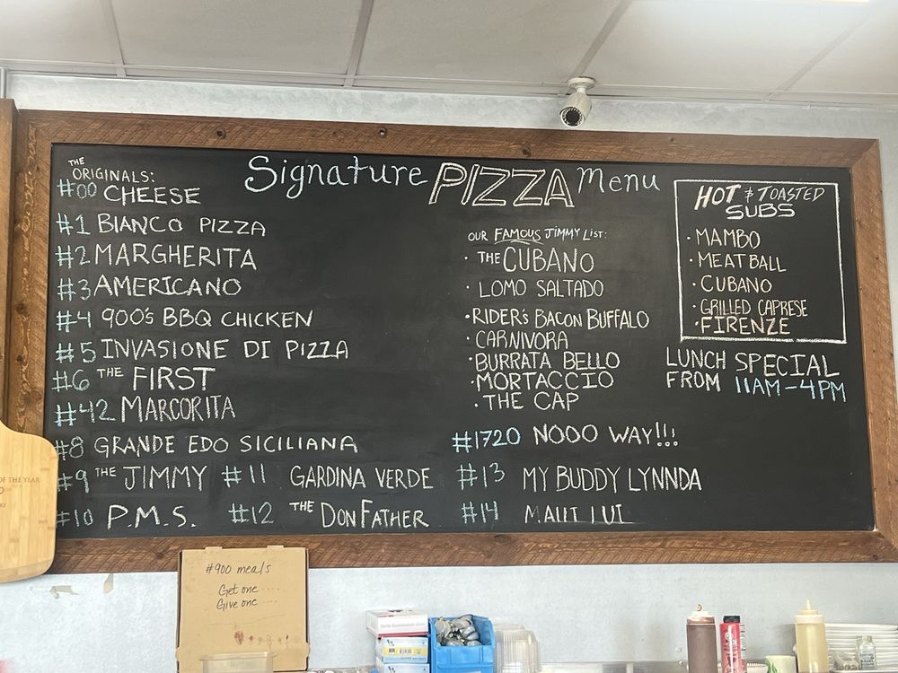 900's red sauce, house made fresh mozzarella, calabrese salami, pepperoni, roasted Italian sausage, roasted garlic calabrian chili infused oil, crushed red pepper, basil and Parmesan cheese.