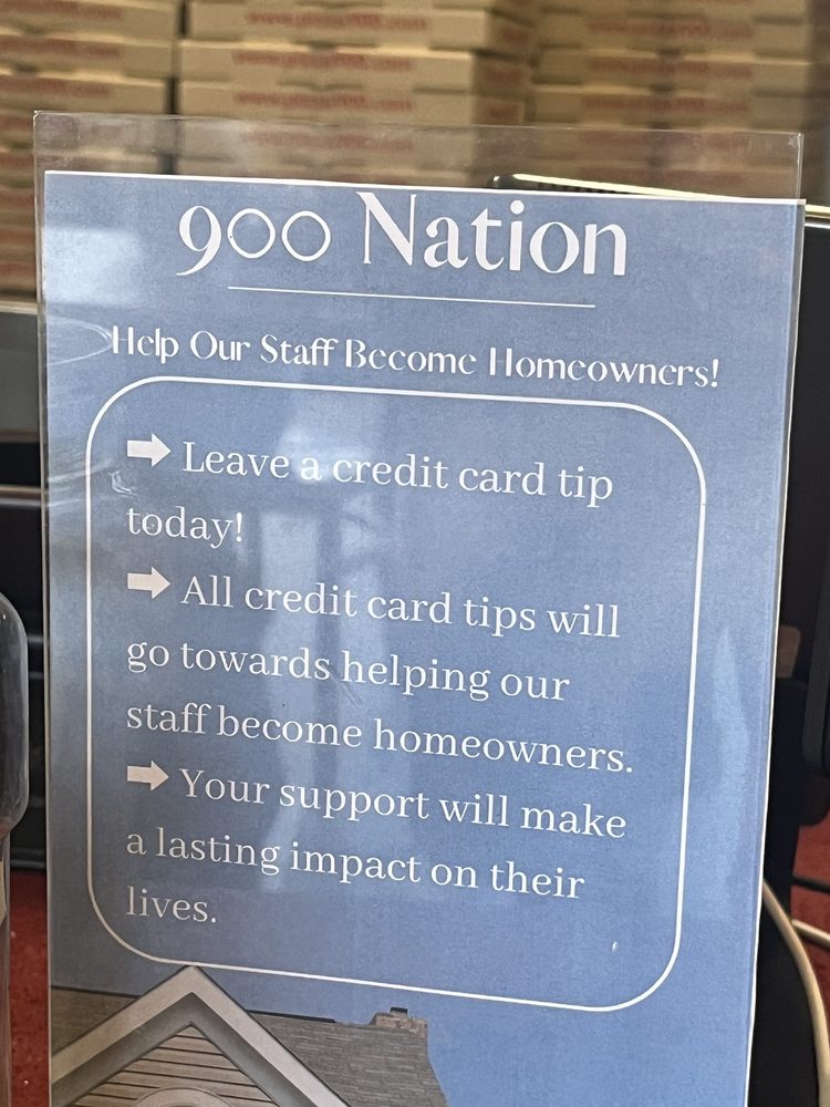 900's red sauce, house made fresh mozzarella, prosciutto crudo, caramelized onions, topped off with arugula tossed with 900's house dressing and shaved Parmesan.